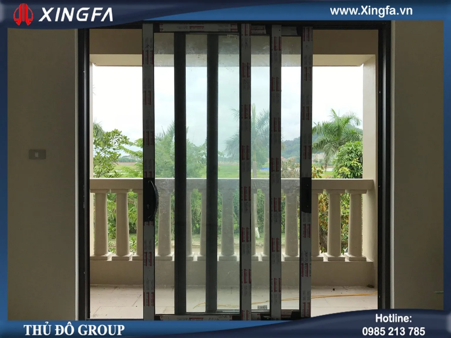 Mẫu cửa đi nhôm Xingfa hệ 93 BẢN TO dày 2.0mm mở trượt 3 cánh trên 3 ray độc lập