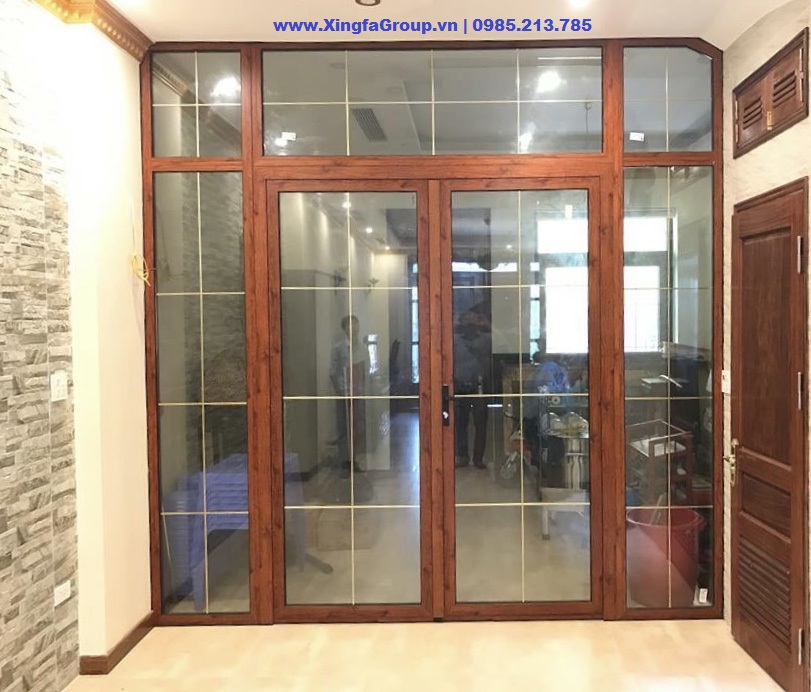 Hình ảnh mẫu cửa nhôm Xingfa giả gỗ (mầu vân gỗ nhập khẩu tem đỏ Quảng Đông)