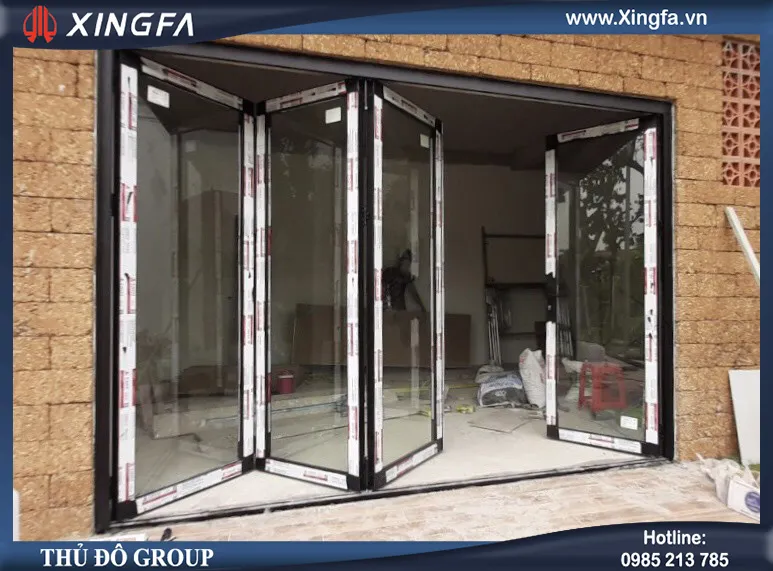 Hình ảnh cửa đi trượt quay 4 cánh nhôm Xingfa nhập khẩu chính hãng