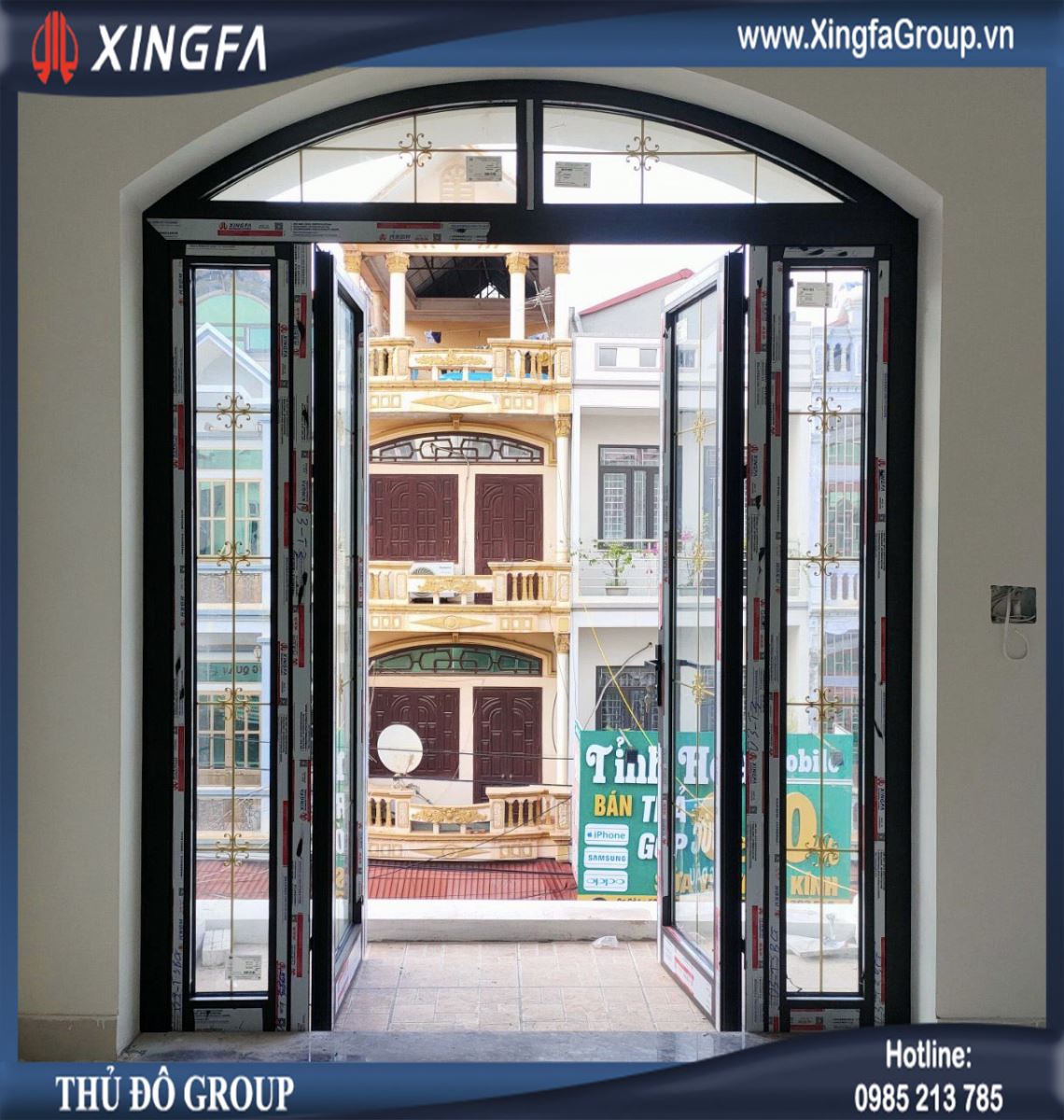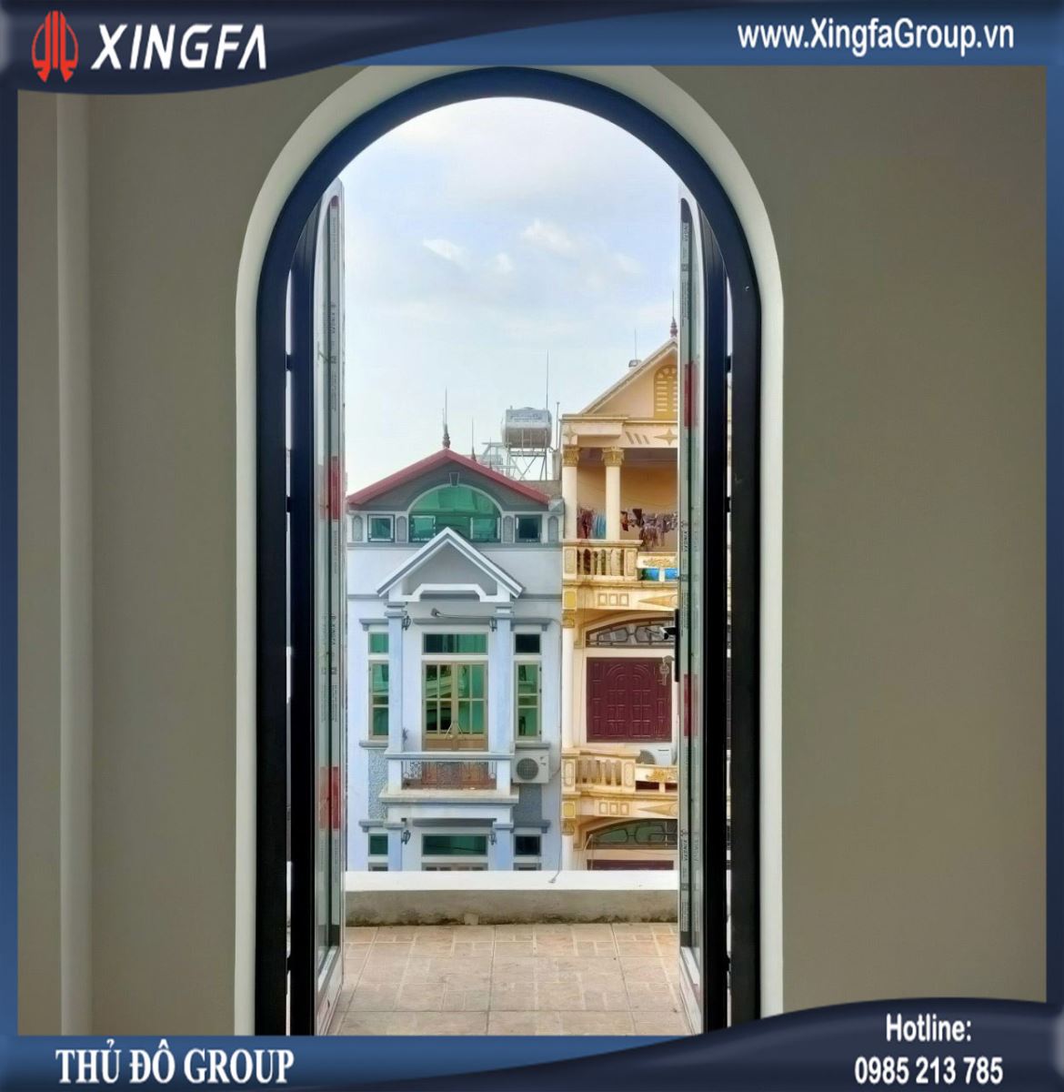 Hình ảnh cửa đi mở quay nhôm Xingfa nhập khẩu thiết kế uốn cong