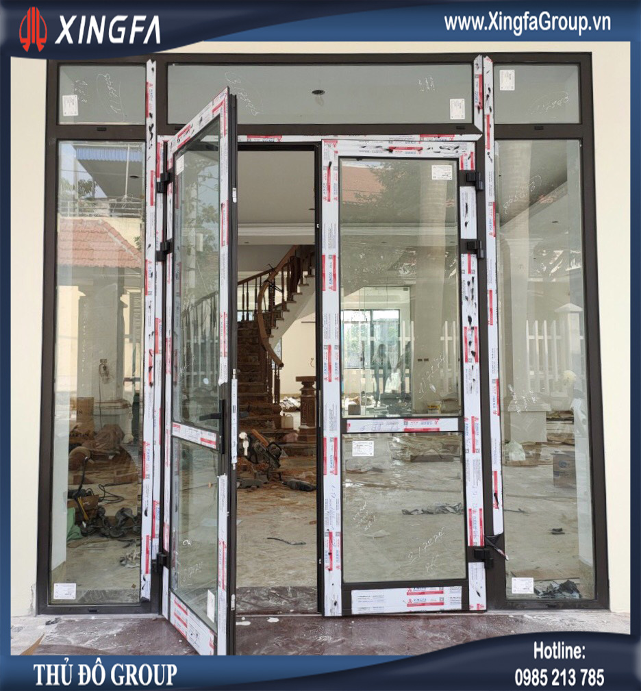 Hình ảnh bộ cửa đi mở quay 2 cánh nhôm Xingfa chính hãng nhập khẩu
