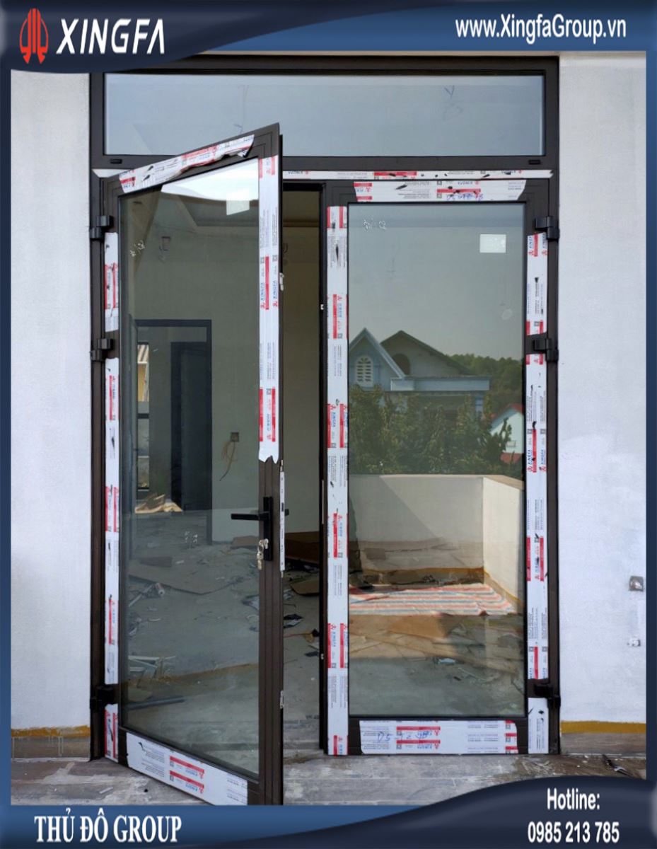 Hình ảnh cửa đi mở quay 2 cánh nhôm Xingfa nhập khẩu chính hãng