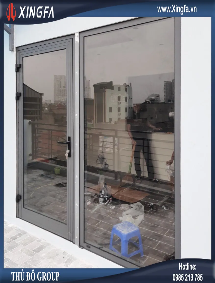 Hình ảnh cửa đi mở quay kết hợp vách kính cố định nhôm Xingfa nhập khẩu chính hãng