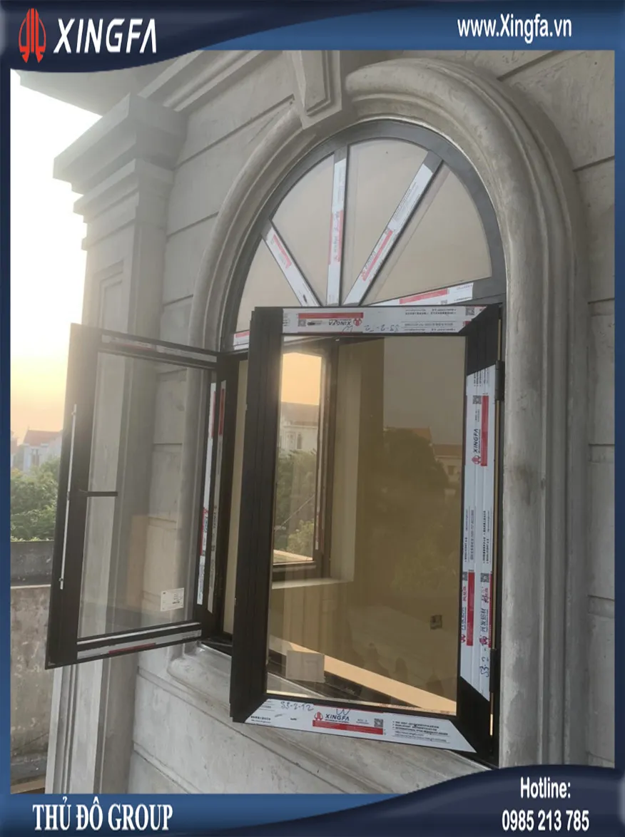 Hình ảnh mẫu cửa sổ mở quay 2 cánh uốn vòm nhôm Xingfa nhập khẩu chính hãng
