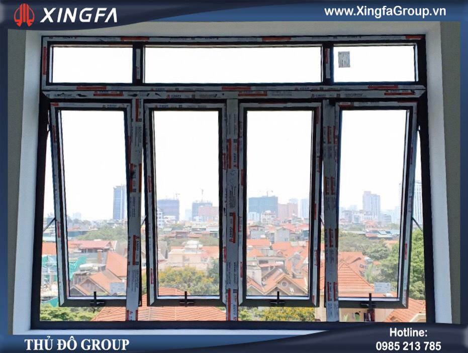 Mẫu cửa sổ mở hất 4 cánh nhôm Xingfa nhập khẩu tem đỏ Quảng Đông