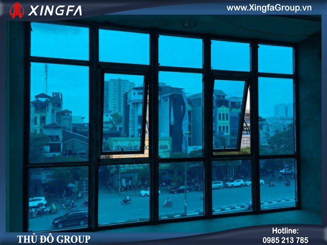 Thủ Đô Group thi công lắp đặt cửa nhôm Xingfa nhập khẩu với thiết kế mẫu cửa sổ mở hất 1 cánh dùng kính mầu xanh Hải Long tại 40 Bạch Mai, Hai Bà Trưng, Hà Nội