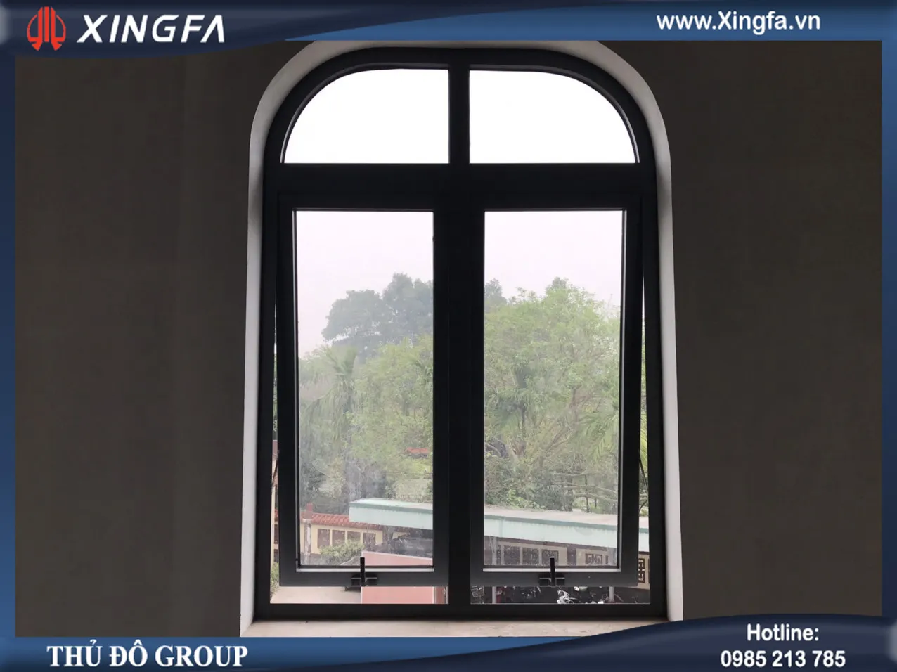 Mẫu cửa sổ nhôm Xingfa mở hất 2 cánh uốn mái vòm cong thẩm mỹ