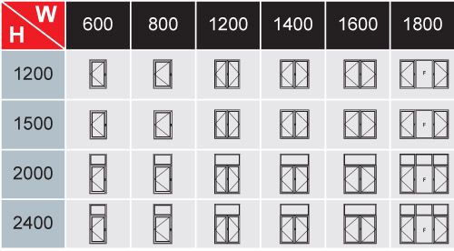 Mẫu thiết kế kích thước quy chuẩn cửa sổ mở quay
