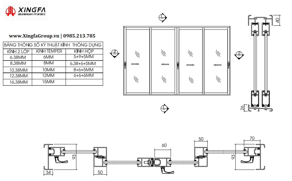 Bản vẽ kỹ thuật cửa sổ mở trượt nhôm Xingfa nhập khẩu