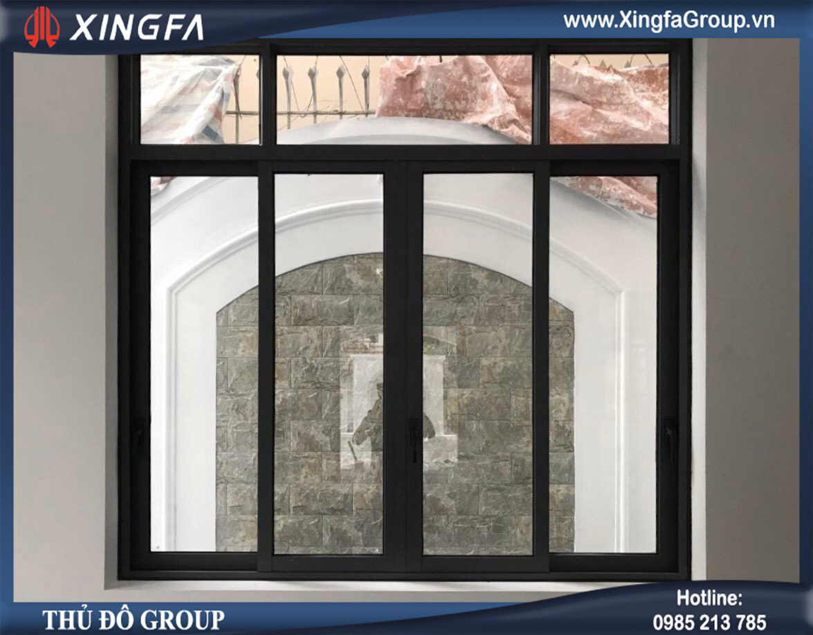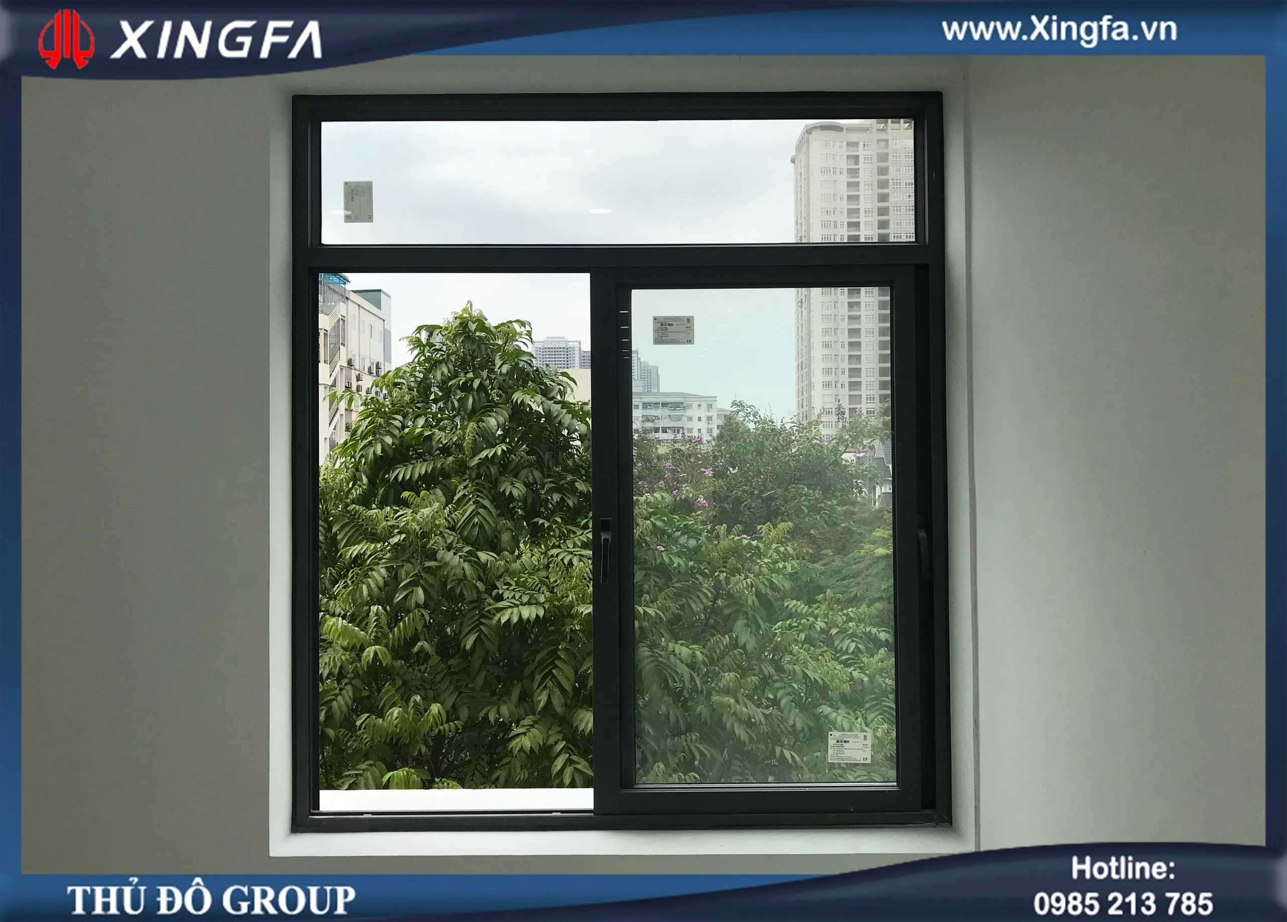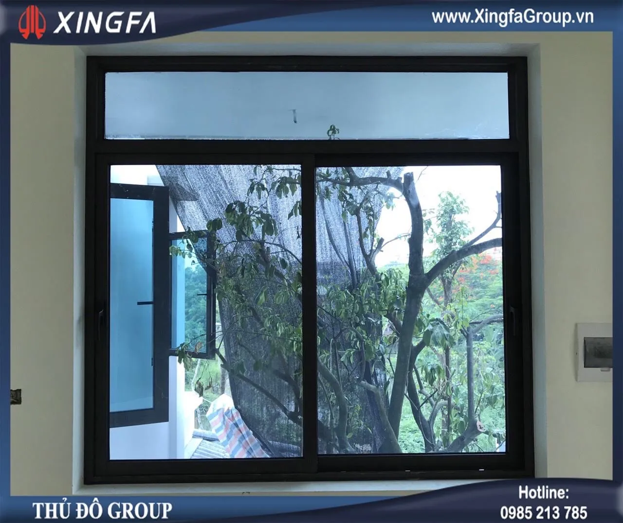 Mẫu cửa sổ nhôm Xingfa mở trượt 2 cánh (chia thêm ô fix cố định bên trên)