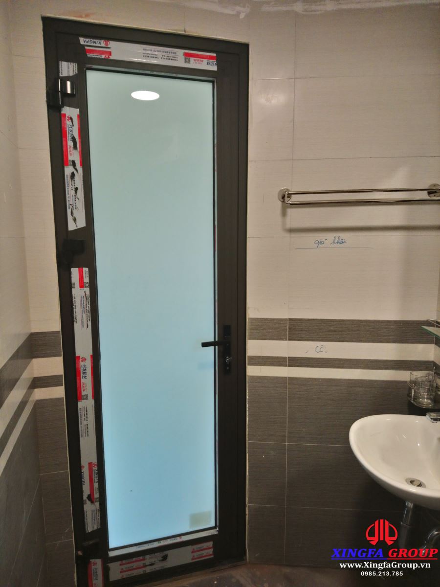 Cửa đi mở quay vào nhà vệ sinh sử dụng kính dán an toàn màu trắng sữa