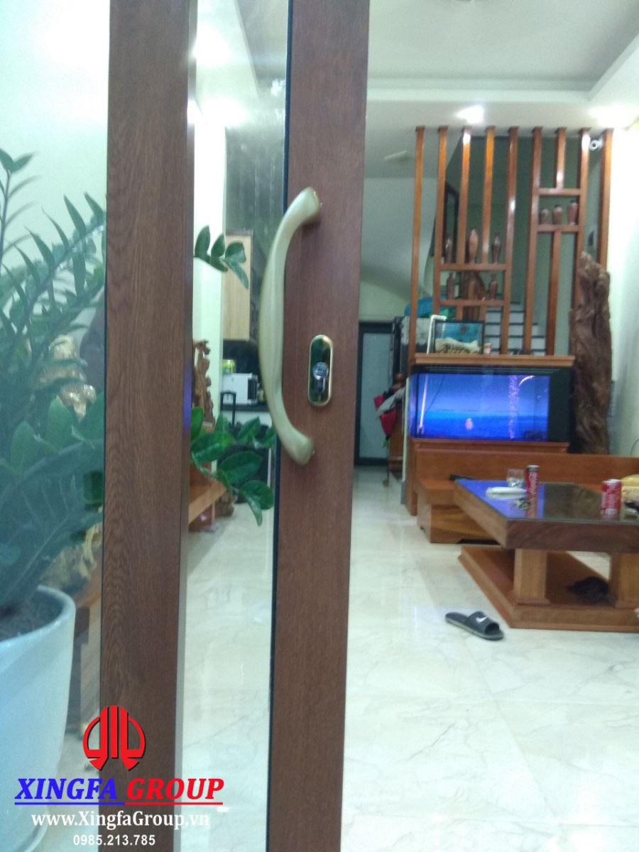 Bộ tay nắm mạ vàng rất hợp với nhôm Xingfa màu vân gỗ