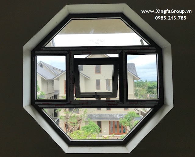 Mẫu cửa sổ mở hất 1 cánh + vách cố định hình bát giác ép góc kín khít tuyệt đối 100%