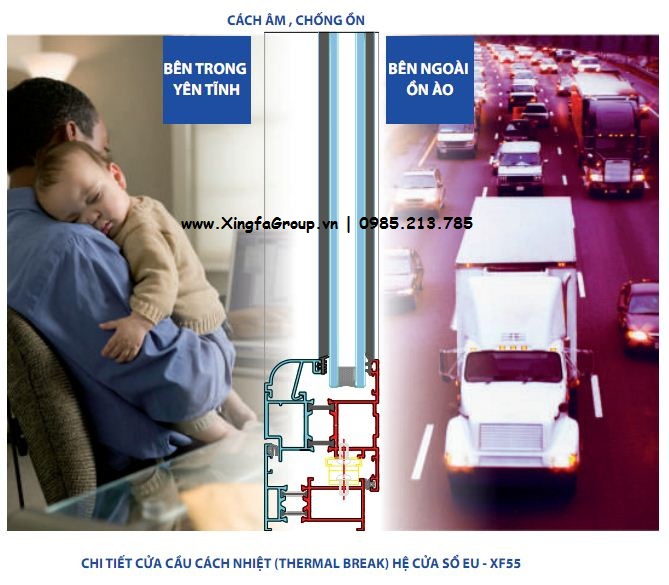 Mặt cắt thanh prpfile nhôm Xingfa có cầu cách nhiệt