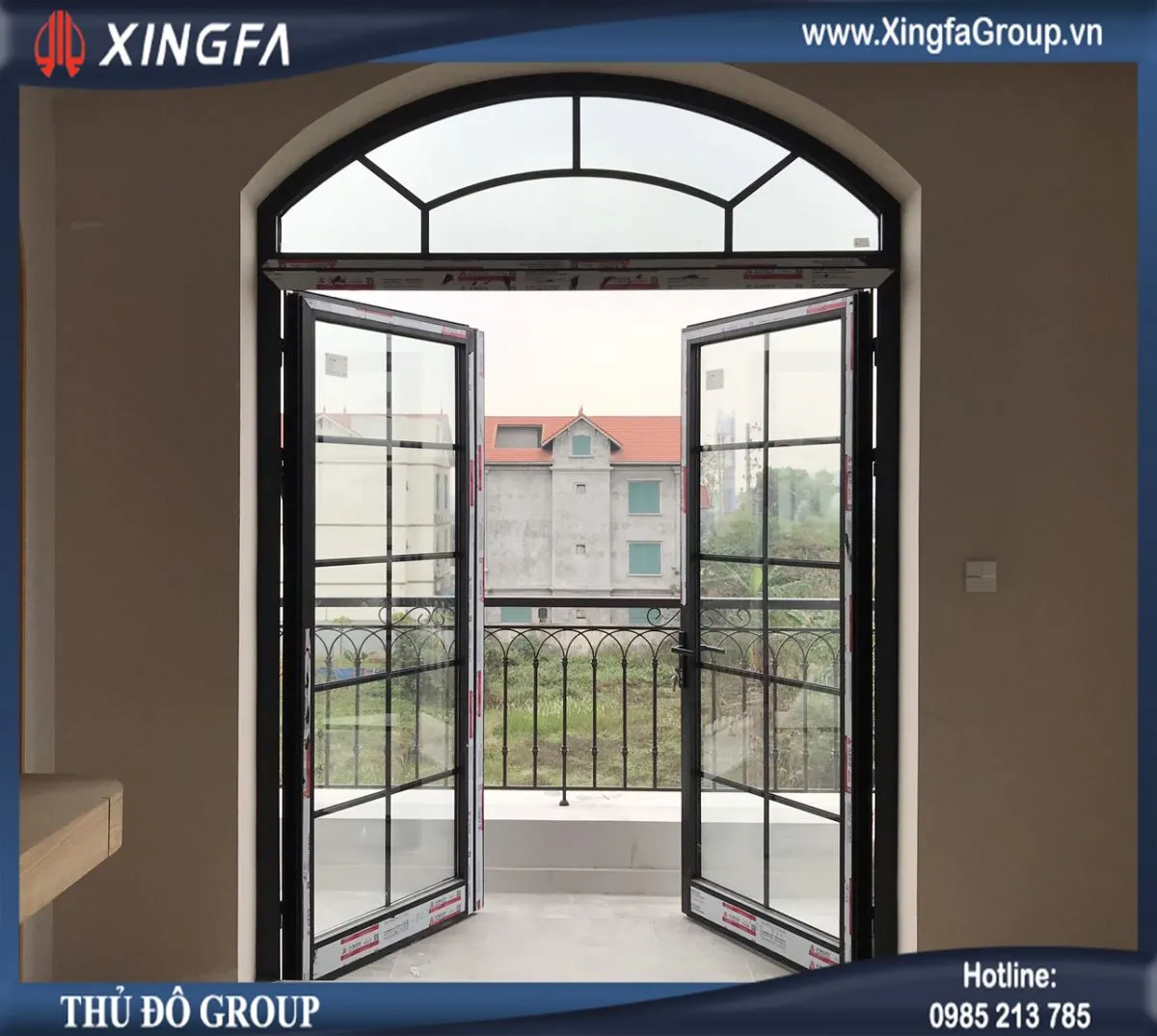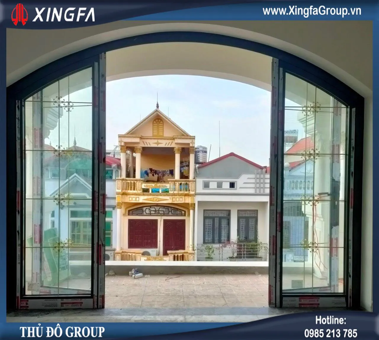 Mẫu cửa đi nhôm Xingfa uốn mái vòm cong fix cố định bên trên