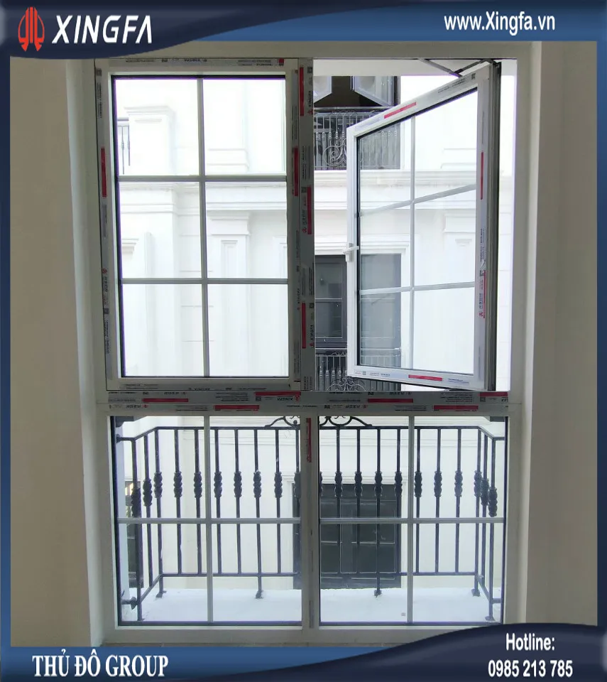 Hình ảnh cửa sổ mở quay 2 cánh nhôm Xingfa nhập khẩu chính hãng