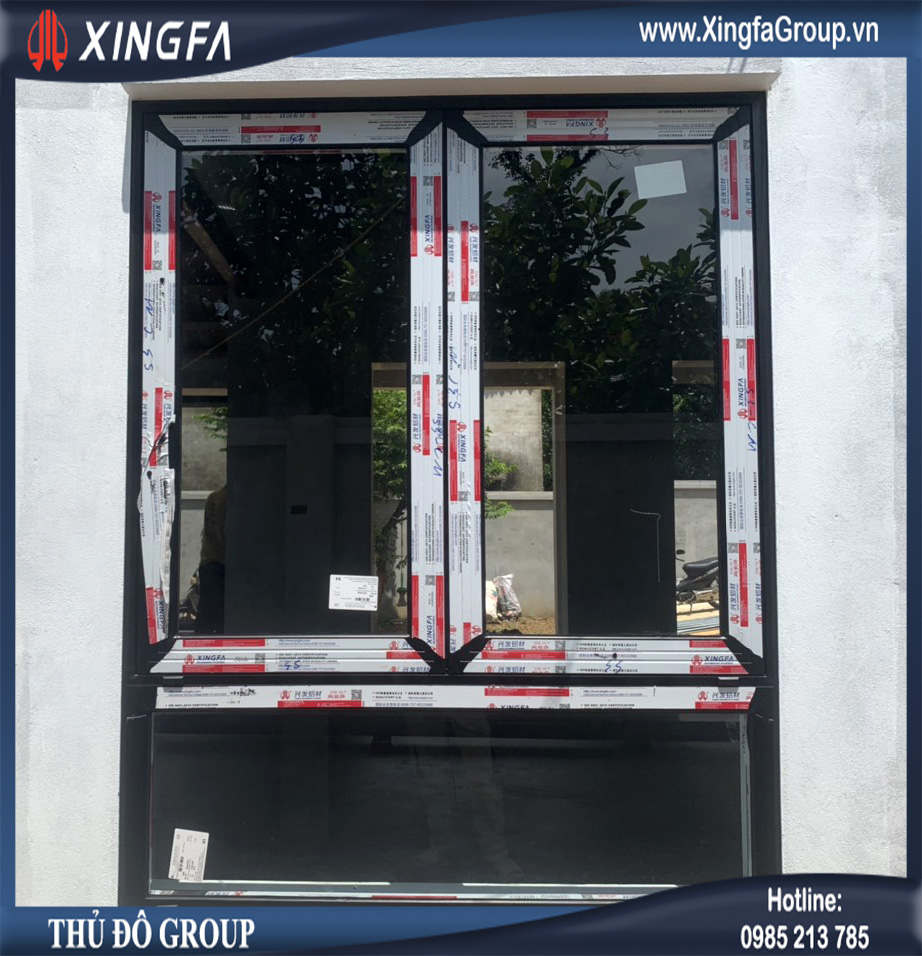 Hình ảnh cửa sổ mở quay 2 cánh nhôm Xingfa còn nguyên vẹn tem đỏ