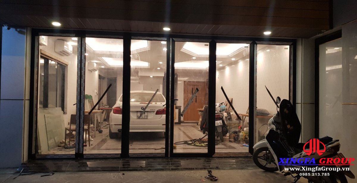 Xingfa Group giới thiệu hình ảnh bộ cửa nhôm Xingfa hệ xếp trượt gấp được lắp đặt tại công trình nhà anh Tuấn Anh ở huyện Đông Anh, Hà Nội. Anh Tuấn Anh đã lựa chọn loại cửa này để lắp đặt tại tầng trệt để xe tại nhà mình. Cửa có khả năng mở hết sang 2 bên tạo không gian khá rộng rãi.