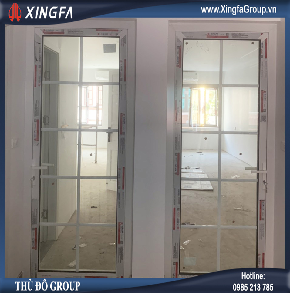 Hình ảnh cửa đi mở quay 2 cánh nhôm Xingfa nhập khẩu chính hãng