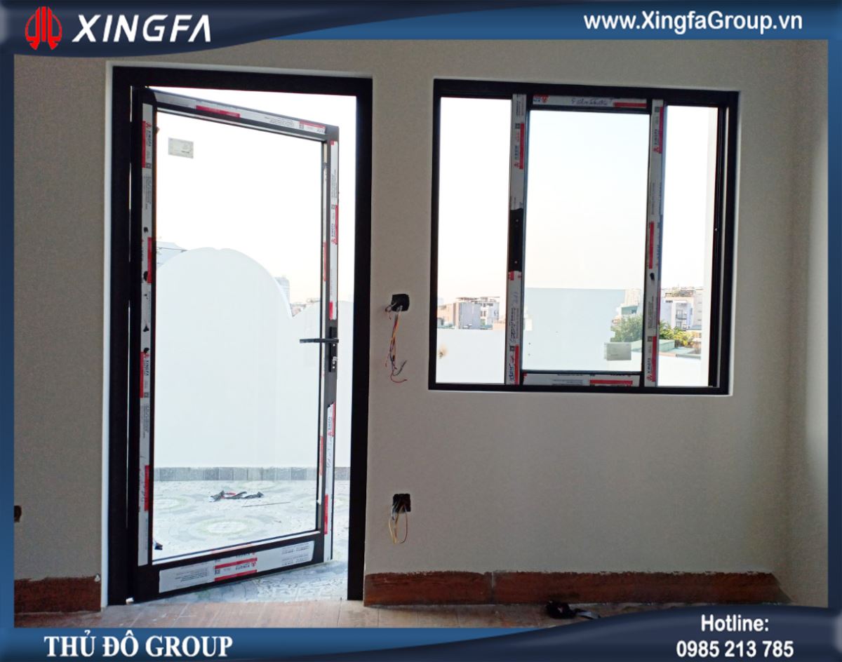 Hình ảnh cửa đi mở quay 1 cánh và cửa sổ mở trượt 2 cánh nhôm Xingfa