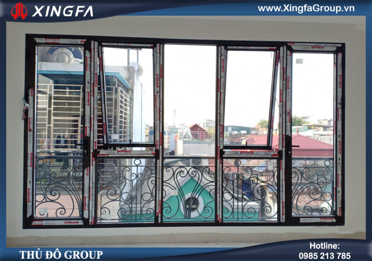 Hình ảnh cửa sổ mở hất kết hợp các vách kính fix cố định nhôm Xingfa