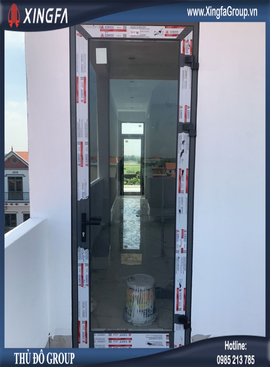 Hình ảnh cửa đi mở quay 1 cánh nhôm Xingfa tem đỏ Quảng Đông