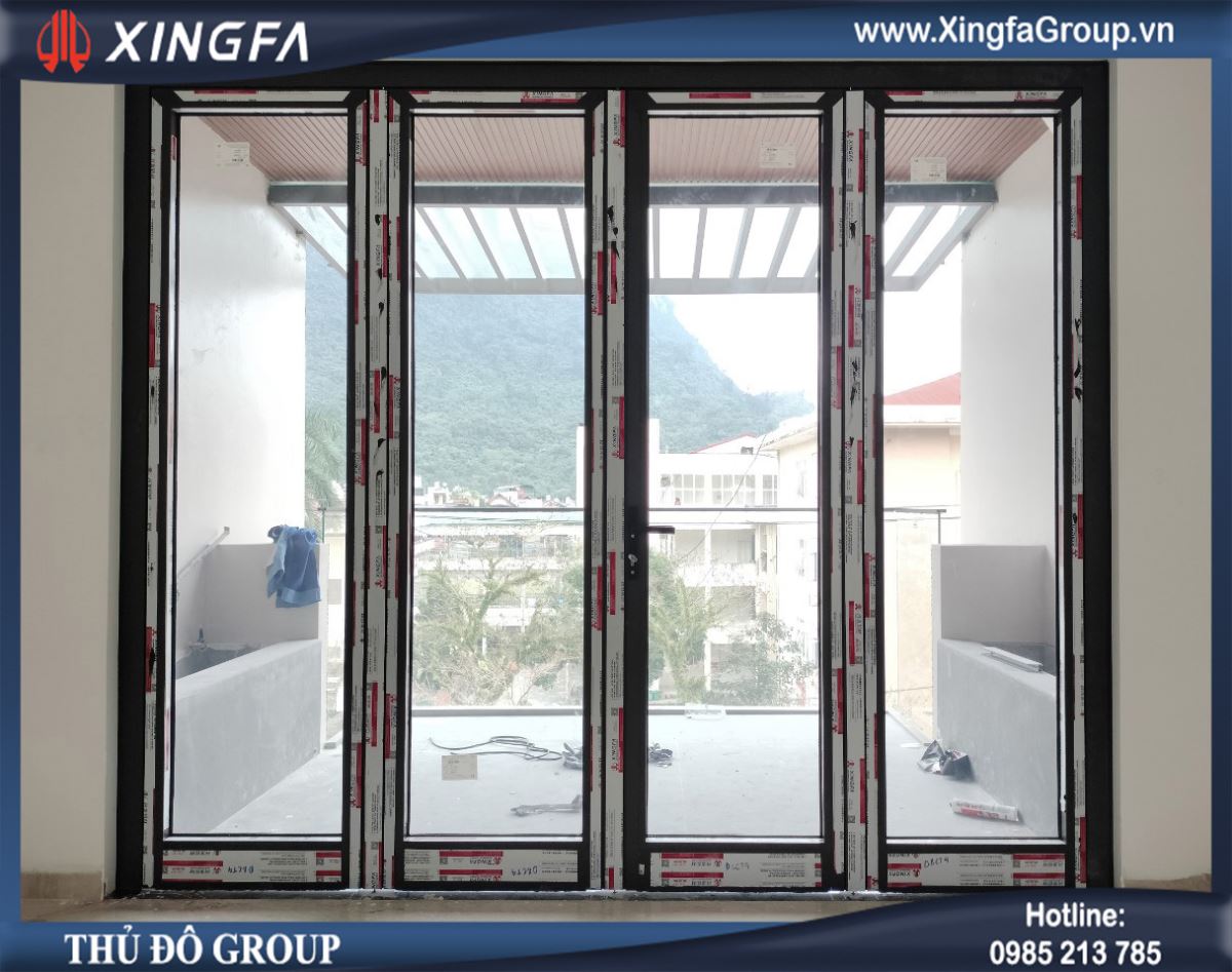 Hình ảnh cửa đi mở quay 4 cánh nhôm Xingfa đã lắp đặt tại Hà Giang
