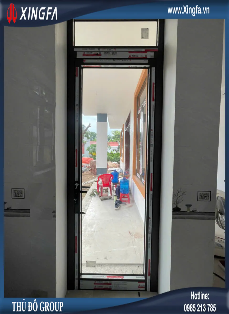 Hình ảnh cửa đi mở quay 1 cánh nhôm Xingfa tem đỏ Quảng Đông