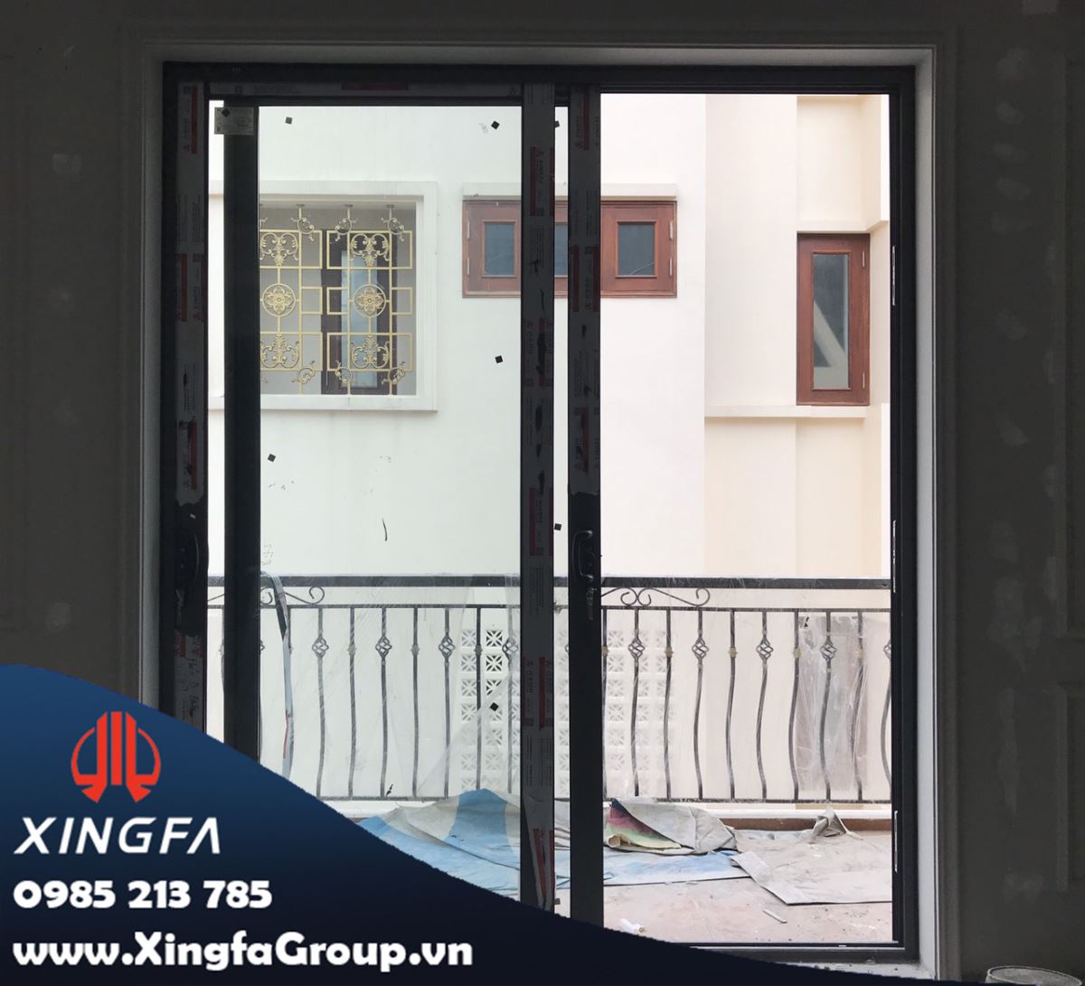 Hình ảnh cửa đi mở trượt 2 cánh nhôm Xingfa công trình tại TP Bắc Ninh