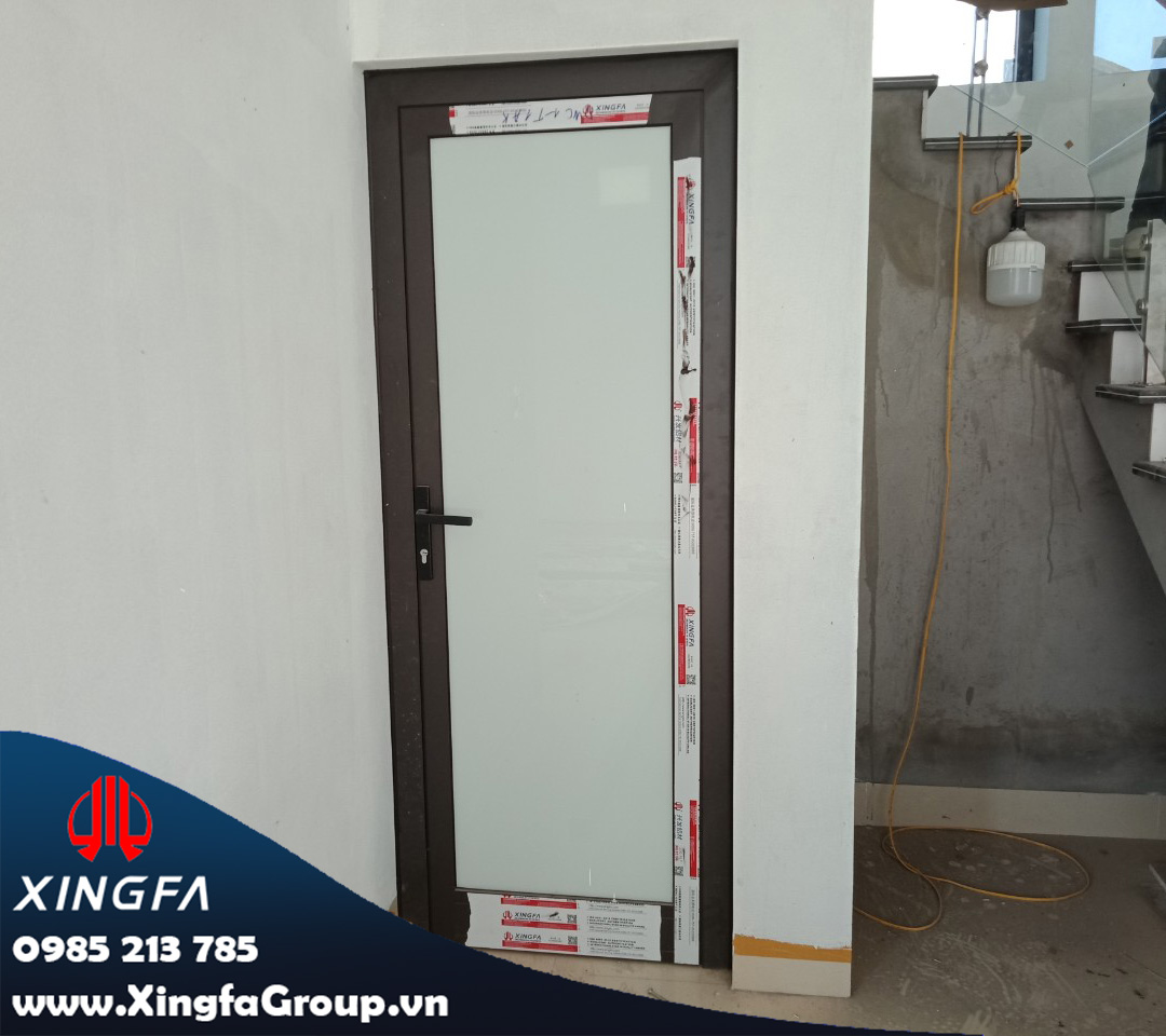 Hình ảnh cửa đi mở quay 1 cánh nhôm Xingfa có kính mầu trắng sữa