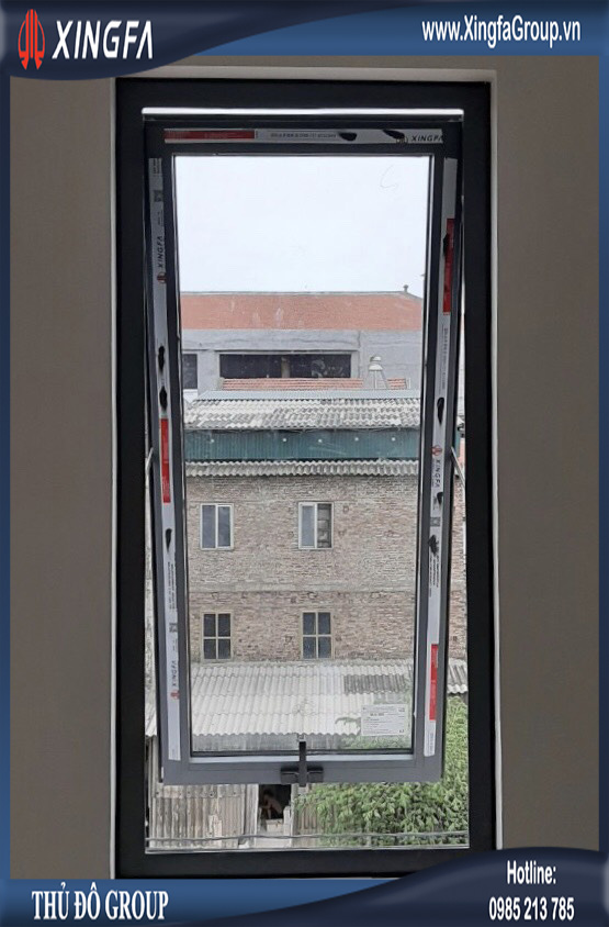 Hình ảnh cửa sổ mở hất 1 cánh nhôm Xingfa hệ 55 độ dầy 1.4mm
