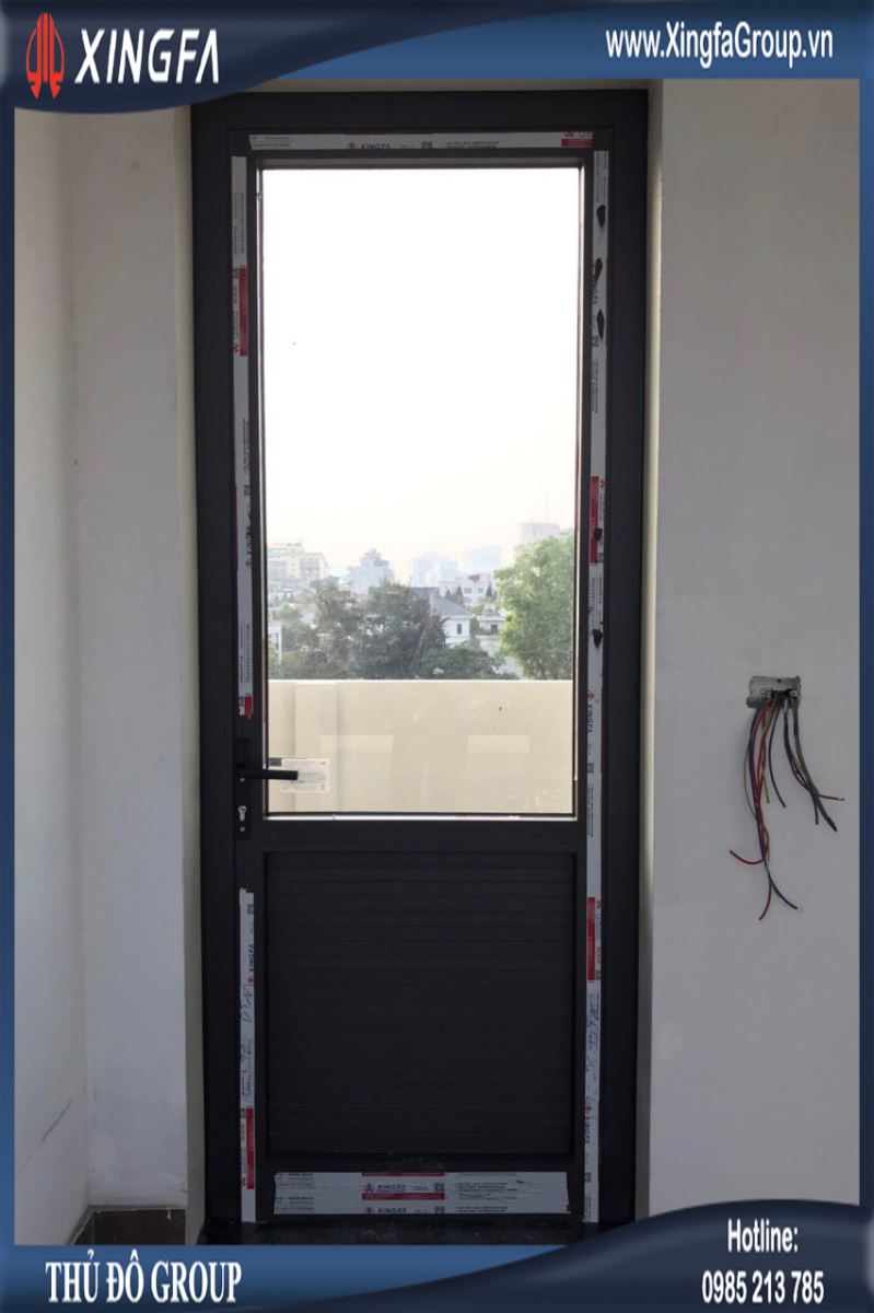 Hình ảnh cửa đi mở quay 1 cánh nhôm Xingfa có pano nhôm