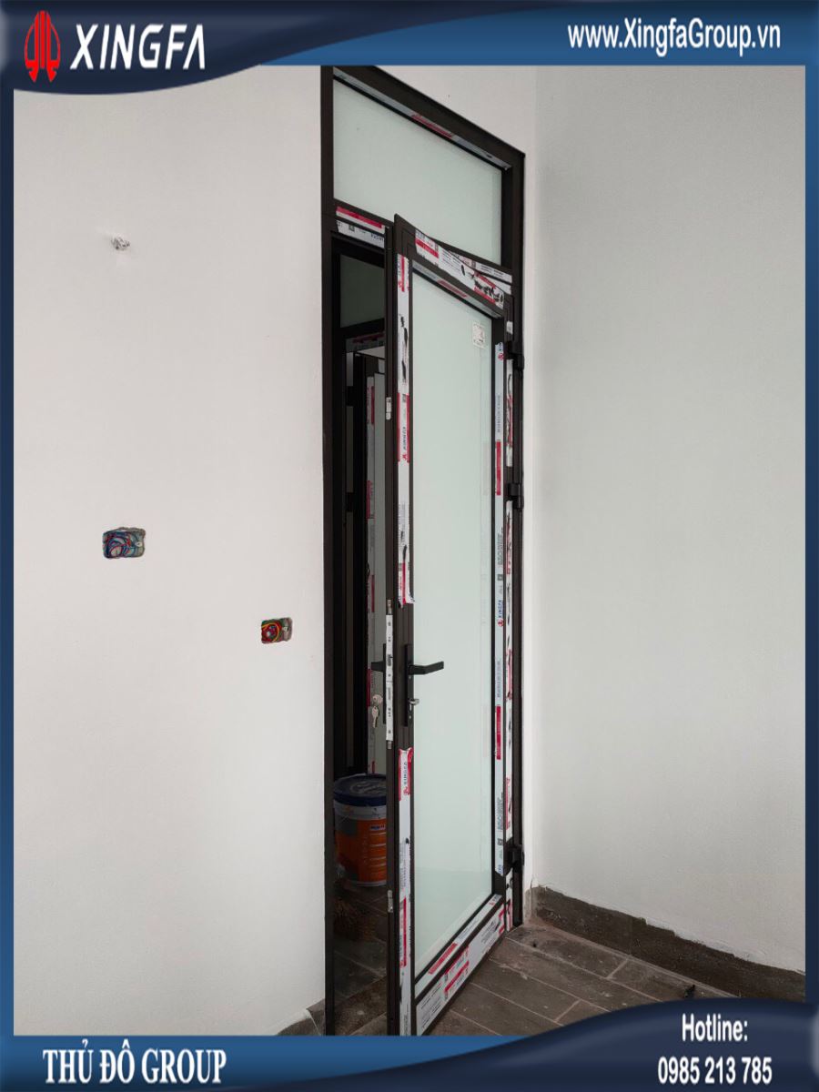 Hình ảnh cửa đi mở quay 1 cánh nhôm Xingfa tem đỏ Quảng Đông
