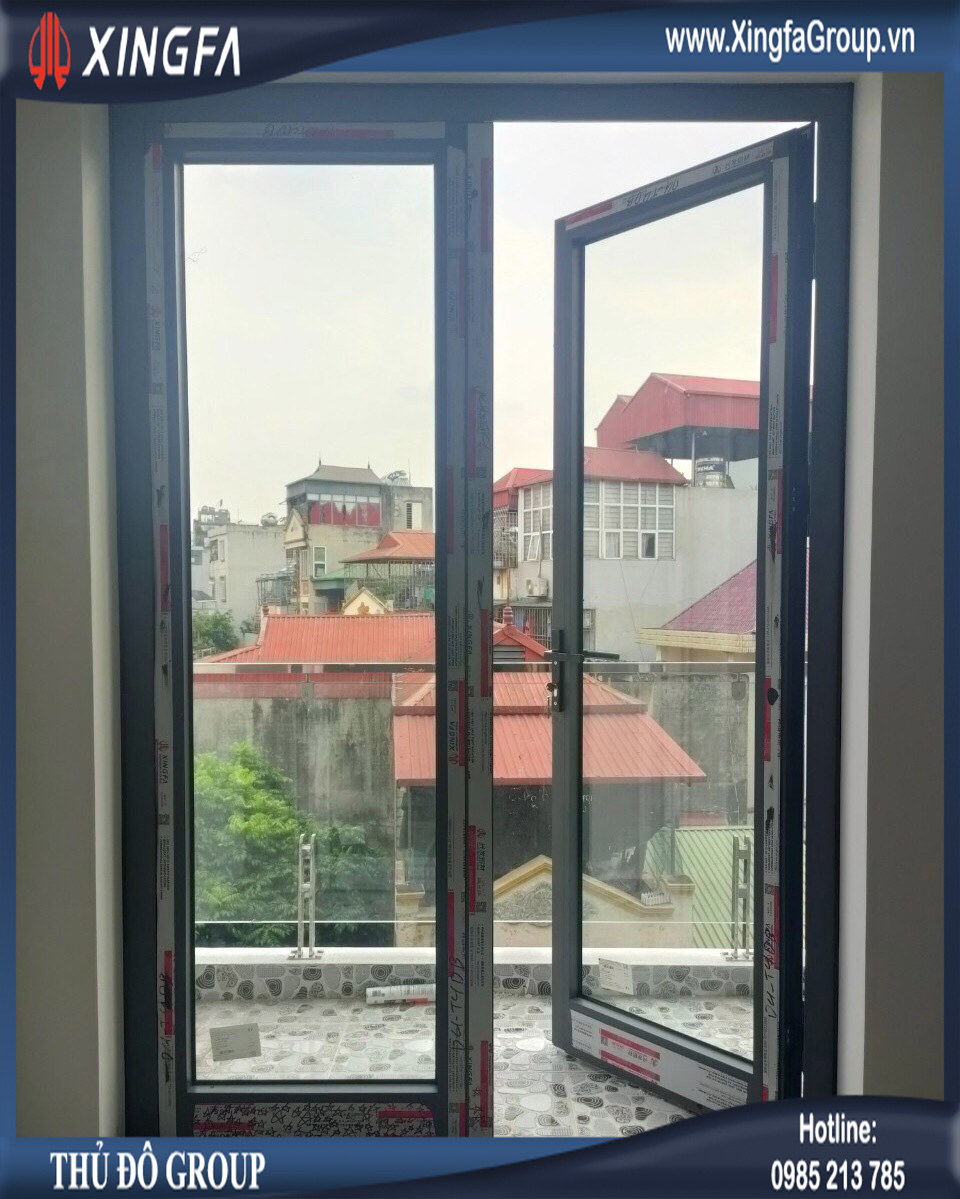 Hình ảnh bộ cửa đi mở quay 2 cánh nhôm Xingfa được lắp đặt tại ban công