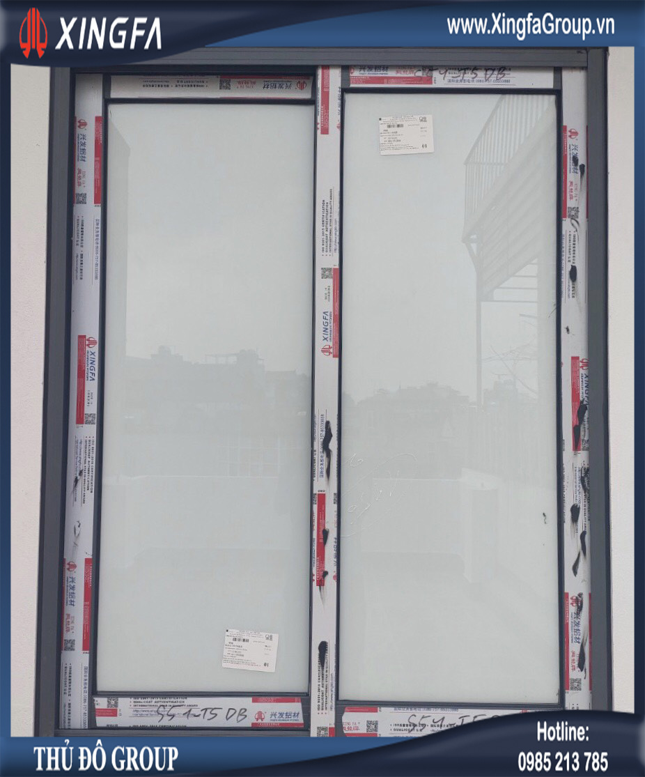 Hình ảnh mẫu cửa sổ mở trượt 2 cánh nhôm Xingfa có kính màu trắng sữa