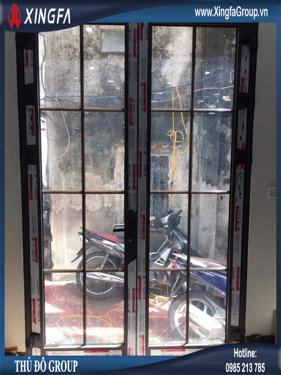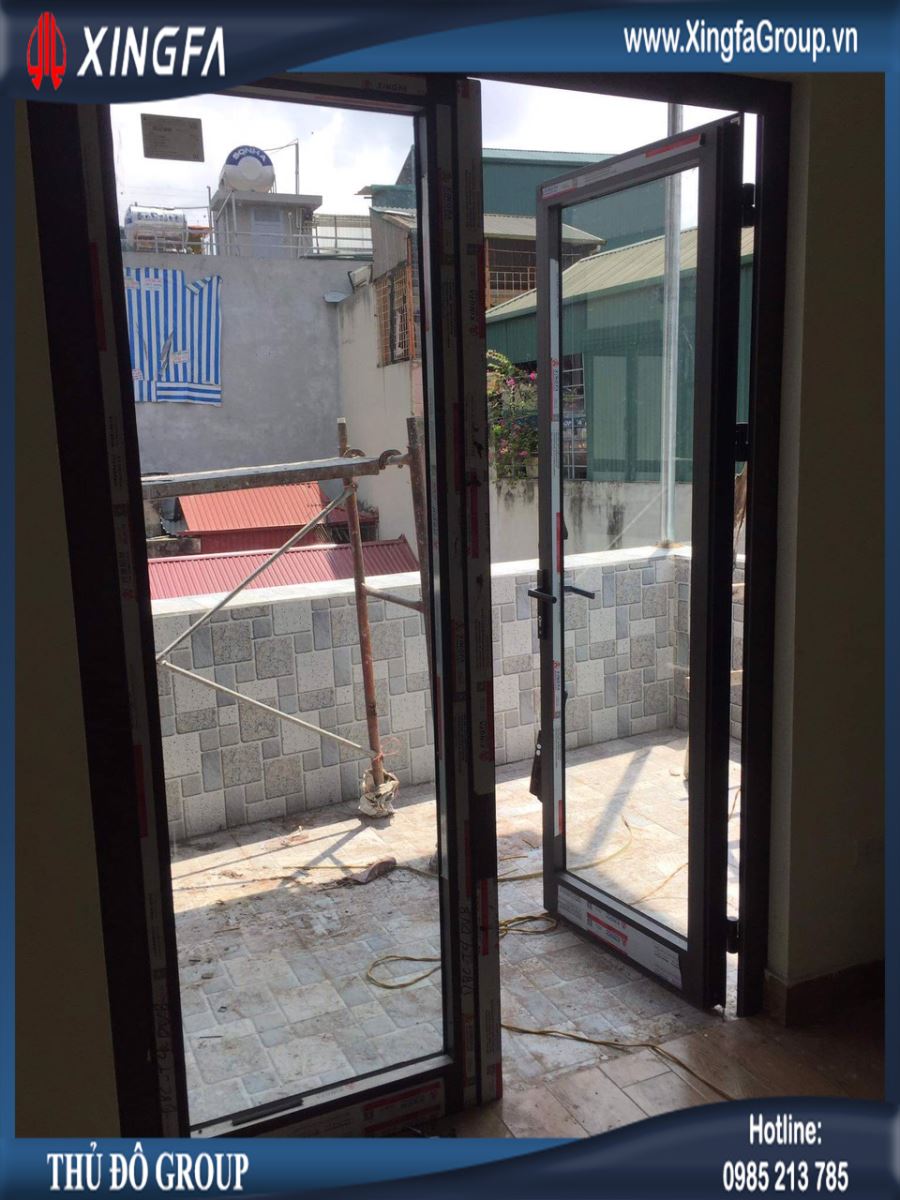 Hình ảnh cửa đi mở quay 2 cánh nhôm Xingfa chính hãng 100%