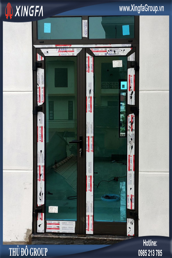Hình ảnh cửa ra vào hệ mở quay 2 cánh nhôm Xingfa chính hãng