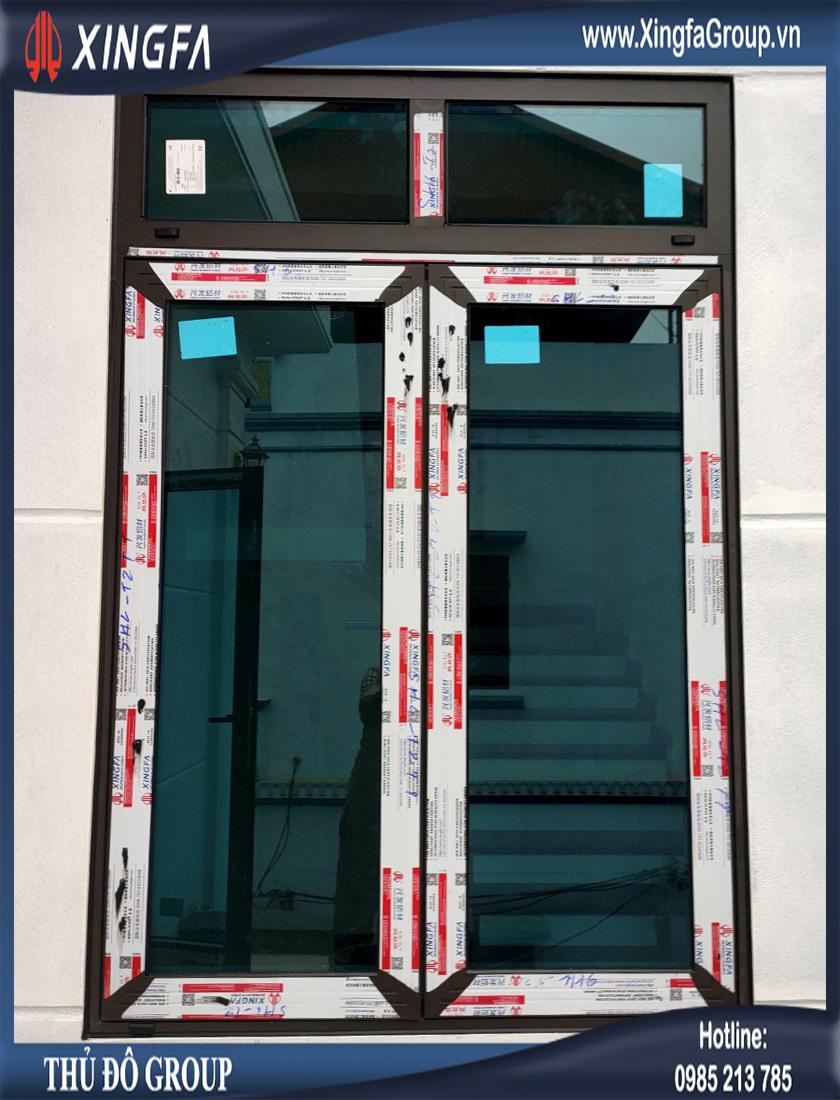 Hình ảnh bộ cửa nhôm Xingfa mở quay 2 cánh tem đỏ Quảng Đông