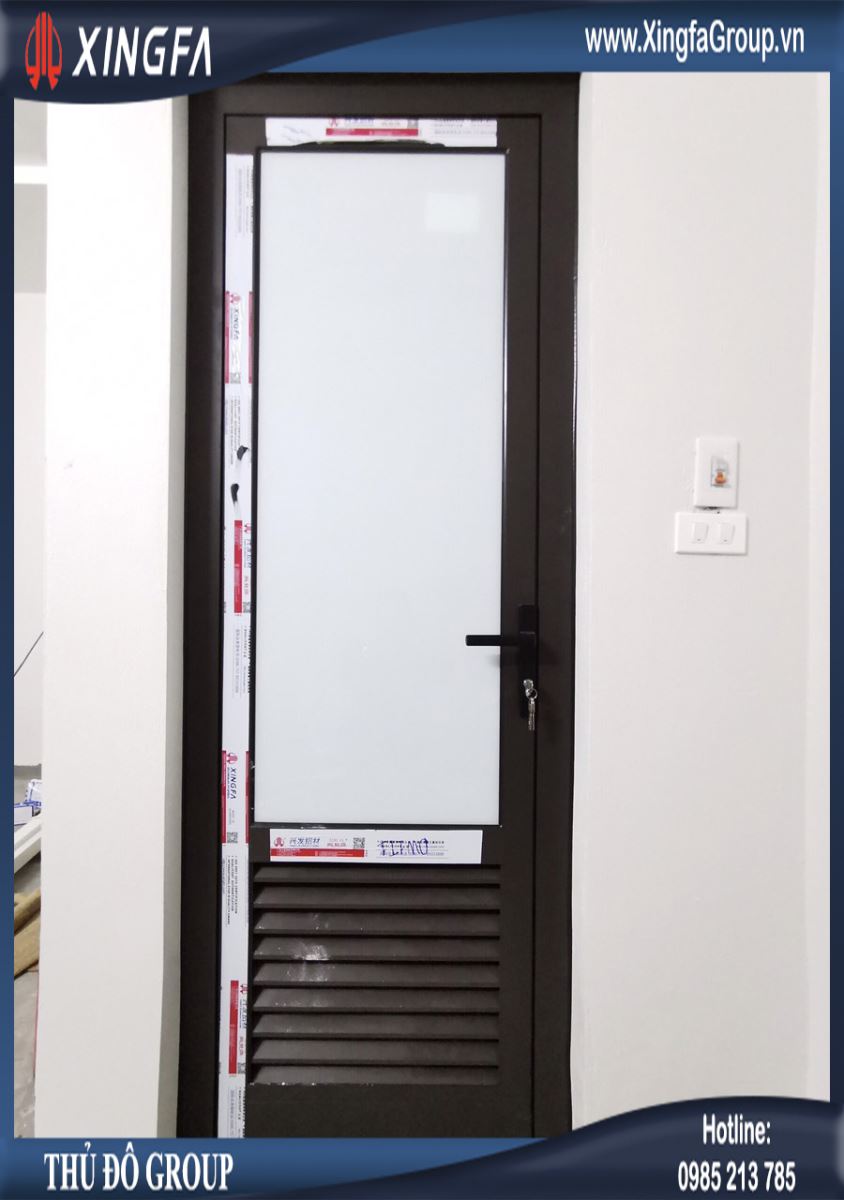 Hình ảnh cửa đi mở quay 1 cánh nhôm Xingfa có một phần chớp nhôm
