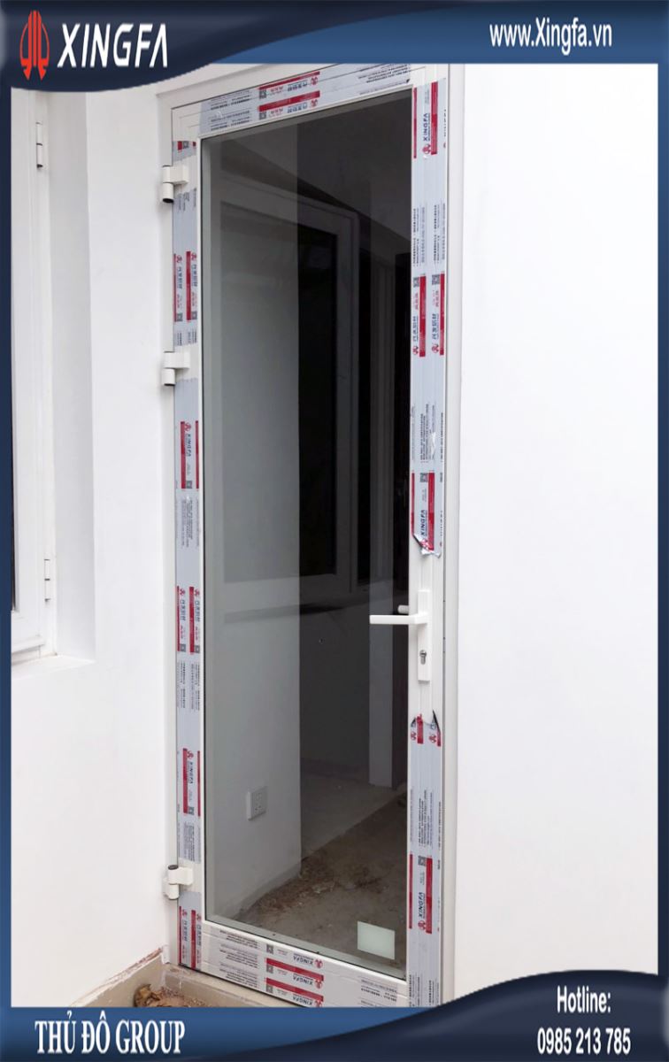 Hình ảnh cửa đi mở quay 1 cánh Xingfa mới lắp đặt tại công trình