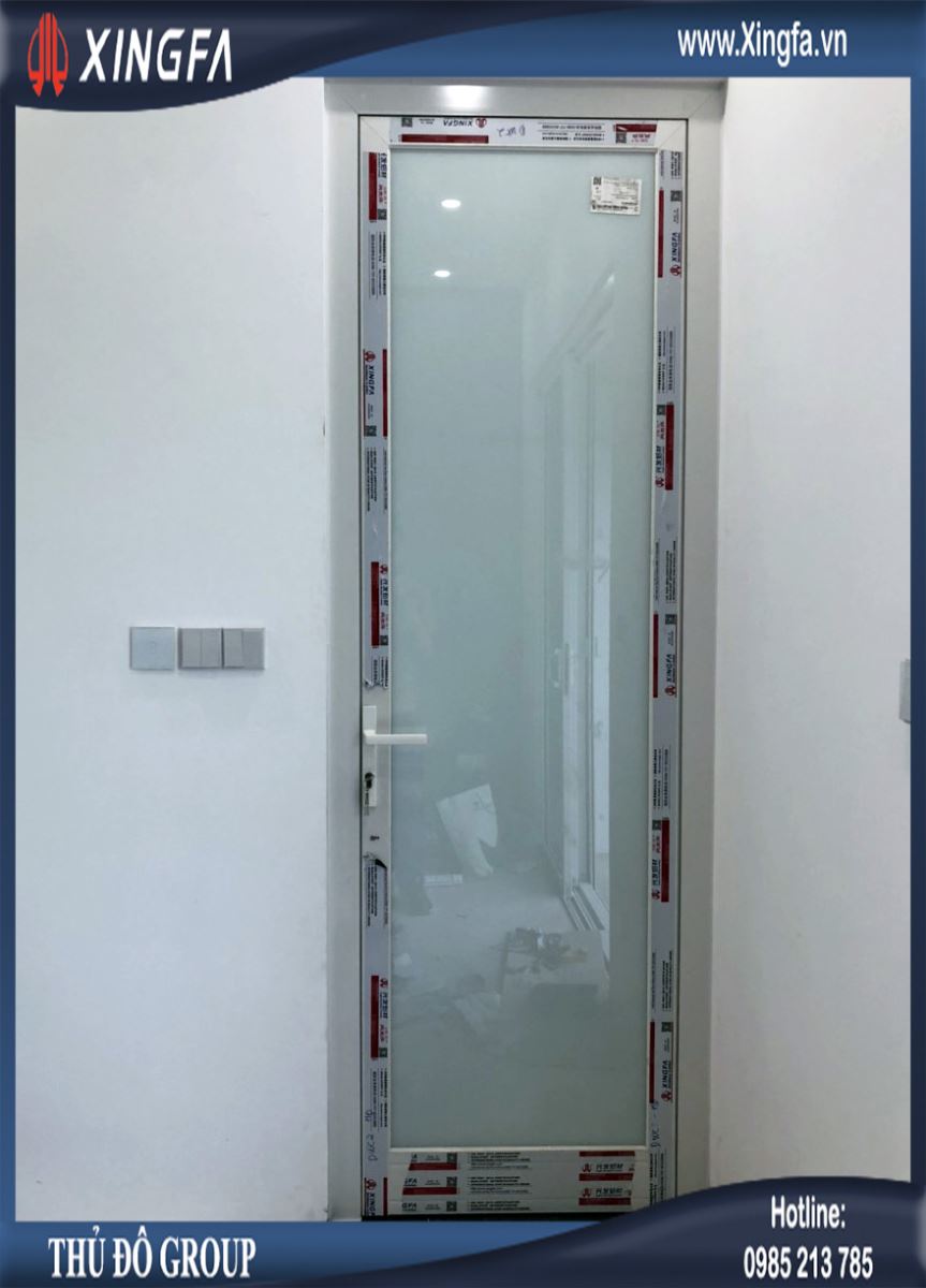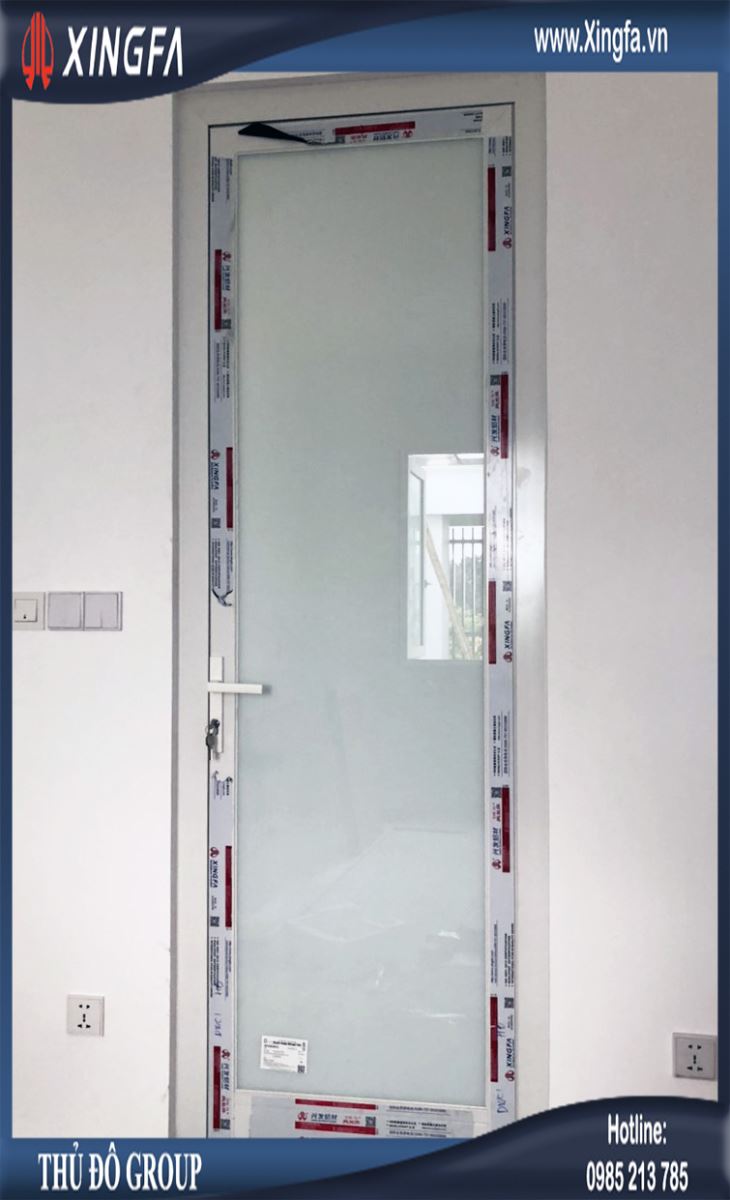 Hình ảnh cửa đi mở quay 1 cánh nhôm Xingfa sử dụng kính trắng sữa