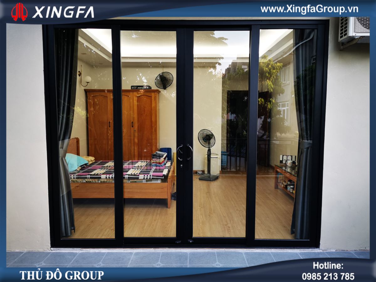 + Cửa đi mở trượt 4 cánh nhôm Xingfa nhập khẩu 100% từ Quảng Đông