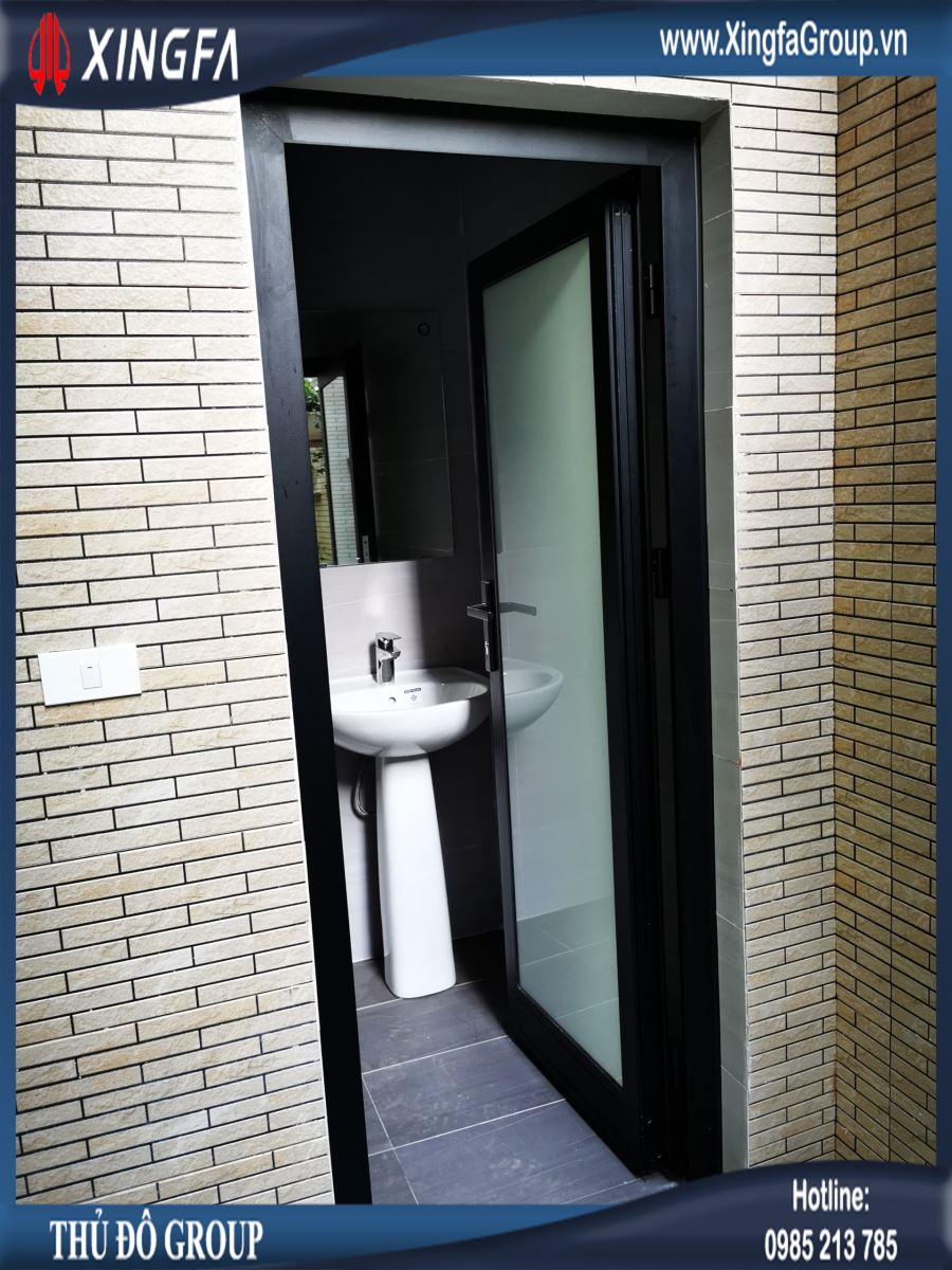 Hình ảnh cửa đi mở quay nhôm Xingfa sử dụng kính Hải Long trắng sữa