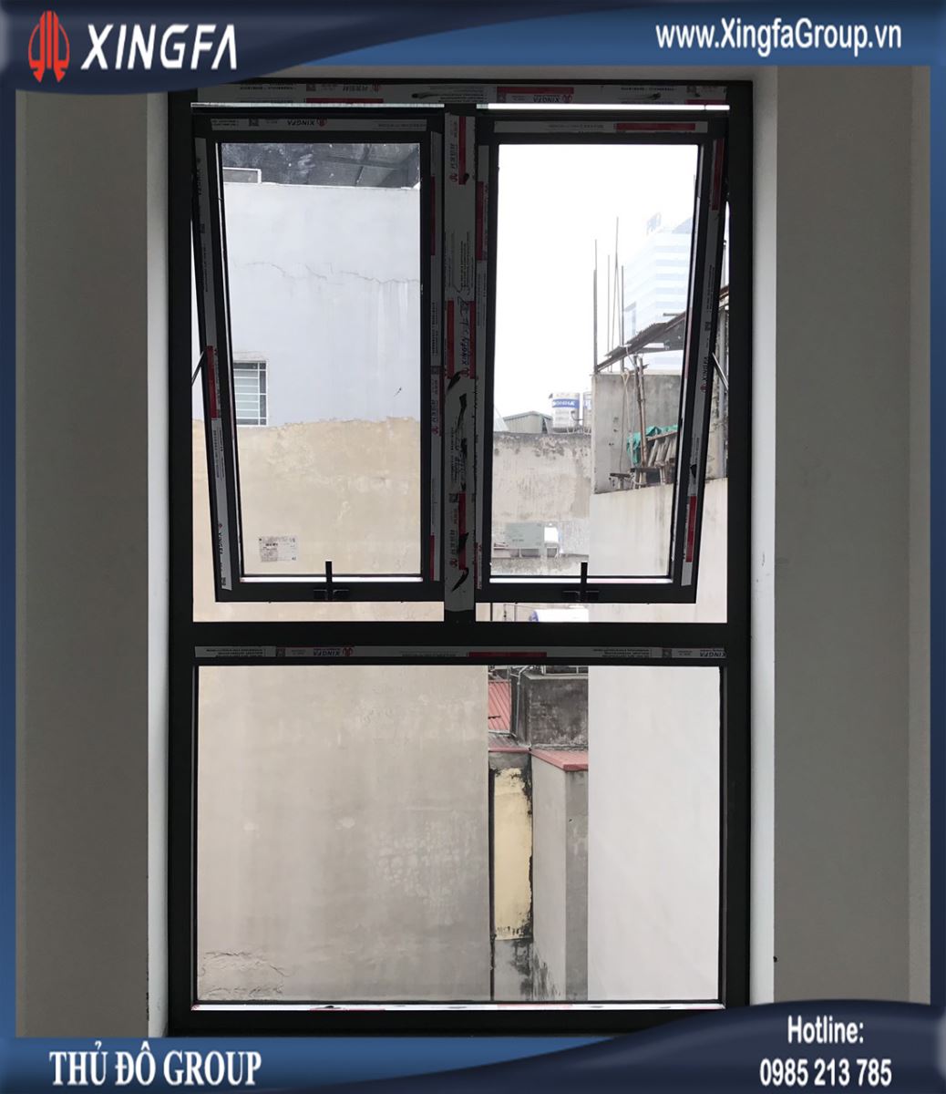 Hình ảnh mẫu cửa sổ mở hất 2 cánh nhôm Xingfa hệ 55 có độ dầy 1.4mm