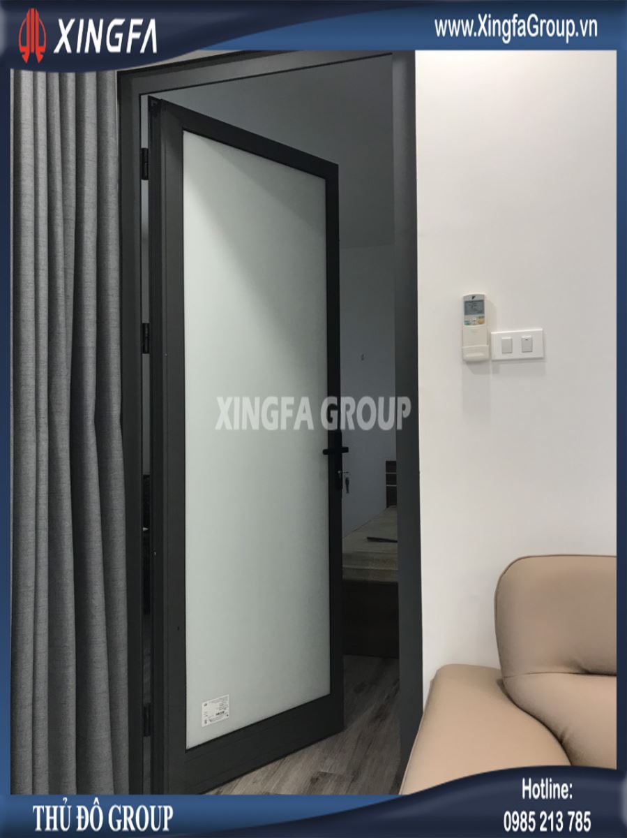 Hình ảnh cửa đi thông phòng mở quay nhôm Xingfa + kính mầu trắng sữa