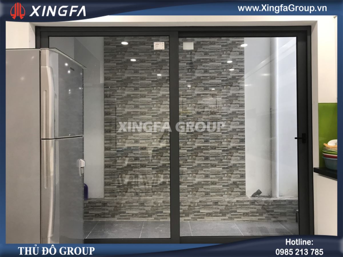 Hình ảnh cửa đi mở trượt 2 cánh nhôm Xingfa tem đỏ Quảng Đông 100%
