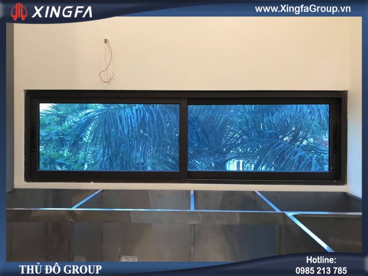 Hình ảnh cửa sổ mở trượt 2 cánh nhôm Xingfa + kính màu xanh