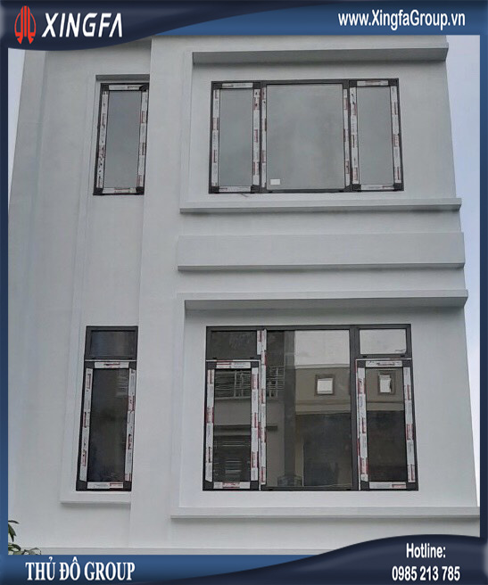Hình ảnh nhìn từ bên ngoài của các bộ cửa nhôm Xingfa đã được lắp đặt