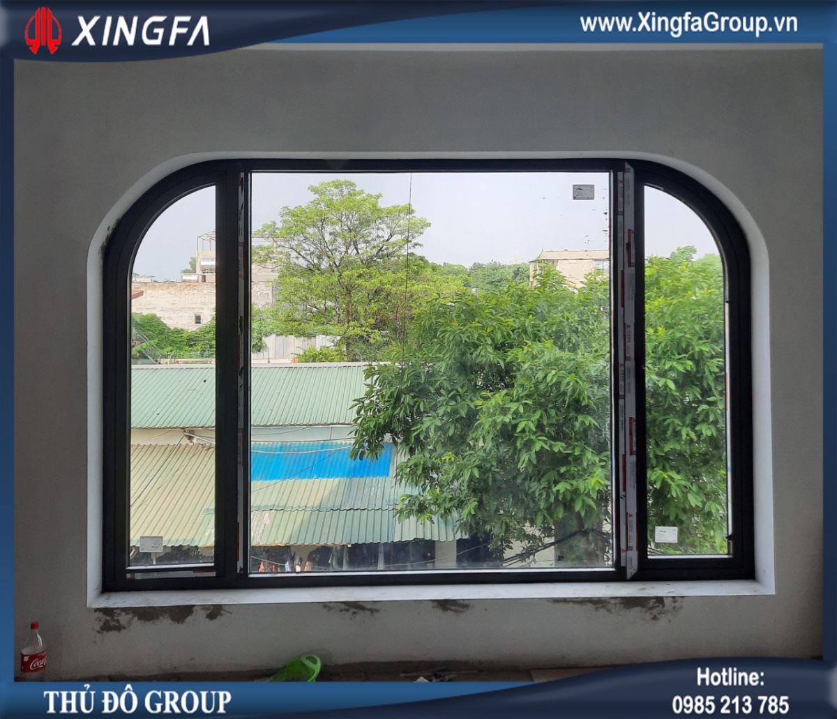 Cửa nhôm Xingfa mở quay kết hợp với vách kính cố định được uốn cong là sản phẩm nổi bật tại đây. Những đường cong, mái uốn vòm được sản xuất một cách tỉ mỉ, chính xác đã mang đến vẻ đẹp cổ điển cho các bộ cửa nhôm Xingfa. Để có thể làm nên những sản phẩm phức tạp như vậy cần có tay nghề kỹ thuật cao, cùng với công nghệ sản xuất, máy móc hiện đại. Và Thủ Đô Group hoàn toàn có thể làm được điều này.