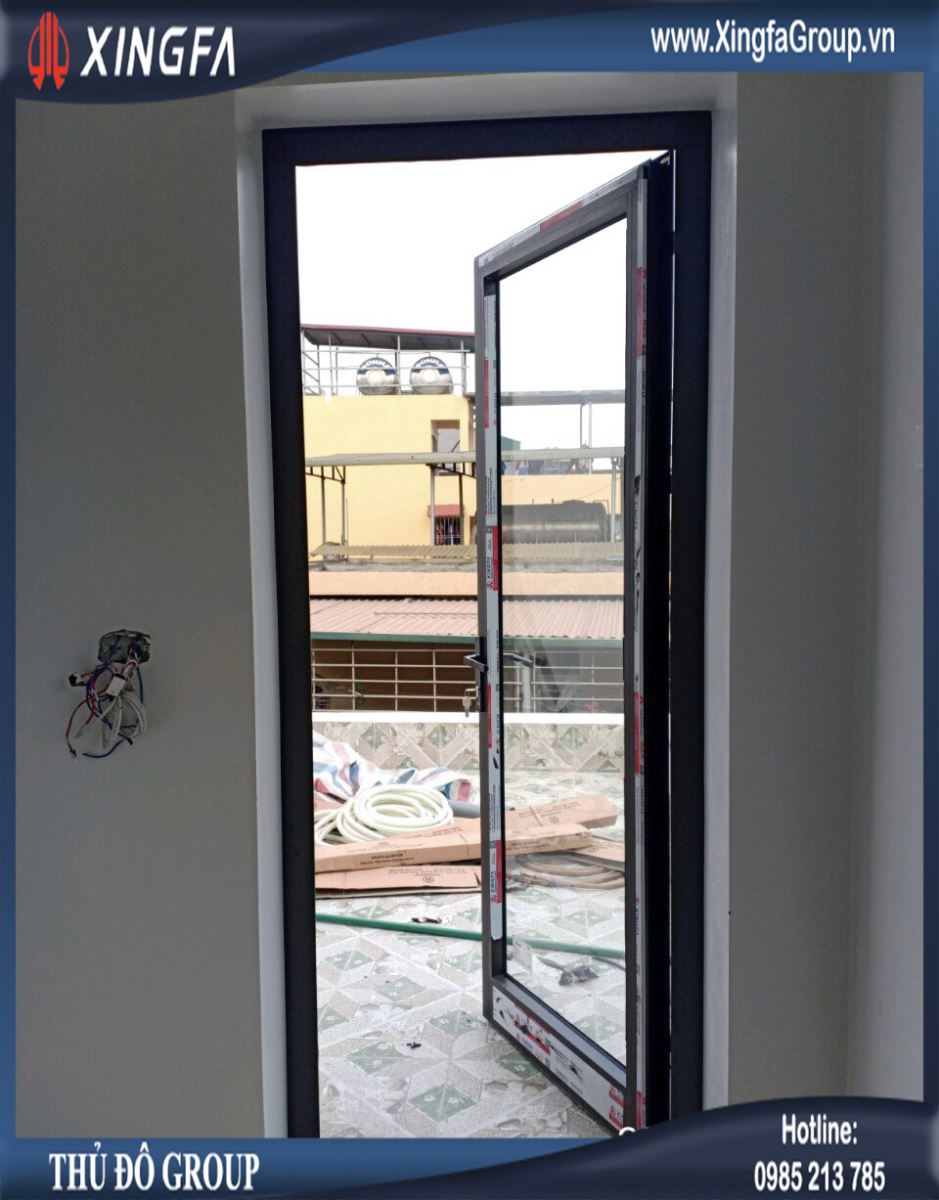 Hình ảnh bộ cửa đi mở quay 1 cánh nhôm Xingfa dùng để đi ra ban công